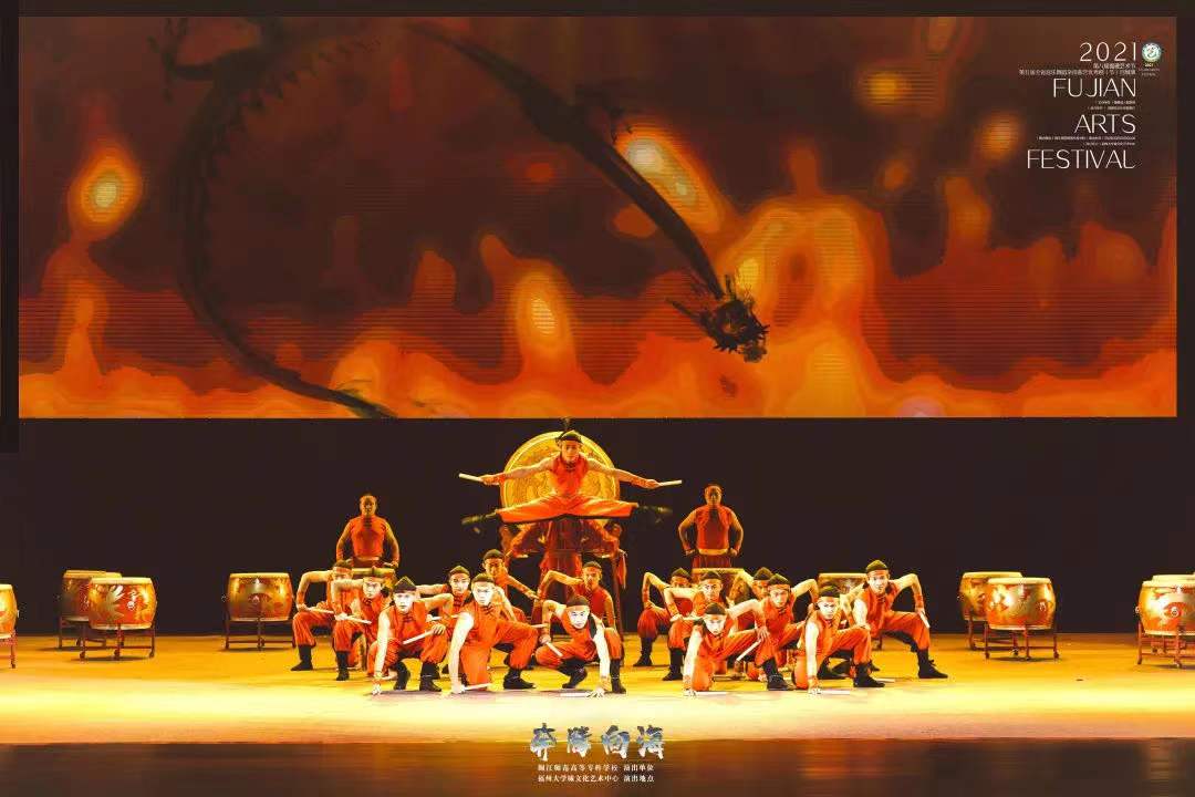 為慶祝中國共產(chǎn)黨成立100周年,堅持“3820”戰(zhàn)略工程思想精髓,助力福州加快建設(shè)現(xiàn)代化國際城市,12月29日,由中共福州市委宣傳部指導(dǎo)、閩江師范高等??茖W校編創(chuàng)出品的情景歌舞劇《奔騰向?!纷鳛榈诎藢酶=ㄋ囆g(shù)節(jié)暨福建省第五屆音樂舞蹈雜技曲藝優(yōu)秀?。ü?jié))目展演入選劇目在福州大學城文化藝術(shù)中心精彩上演?,F(xiàn)場座無虛席,市人大、政協(xié)有關(guān)領(lǐng)導(dǎo)、省教育廳、省文化和旅游廳、各高校、黨史學習教育巡回指導(dǎo)組、市直有關(guān)單位等各級領(lǐng)導(dǎo)、專家應(yīng)邀出席,學校教職工紛紛前來觀看演出。