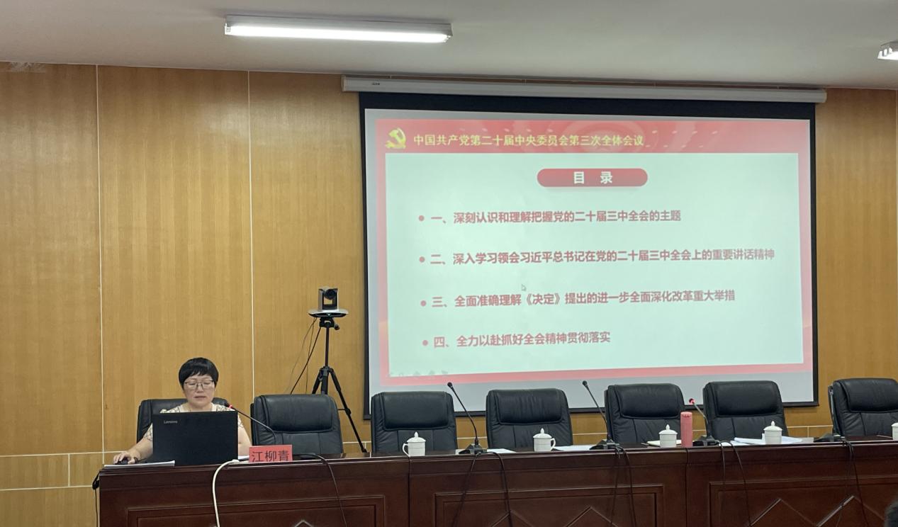 江柳青緊密結(jié)合學(xué)院實(shí)際工作,從深刻認(rèn)識(shí)和理解把握黨的二十屆三中全會(huì)的主題、深入學(xué)習(xí)領(lǐng)會(huì)習(xí)近平總書記在黨的二十屆三中全會(huì)上的重要講話精神、全面準(zhǔn)確理解全會(huì)《決定》提出的進(jìn)一步全面深化改革重大舉措、全力以赴抓好全會(huì)精神貫徹落實(shí)等方面,進(jìn)行了系統(tǒng)宣講和深入闡述。