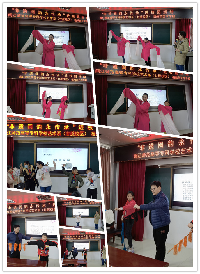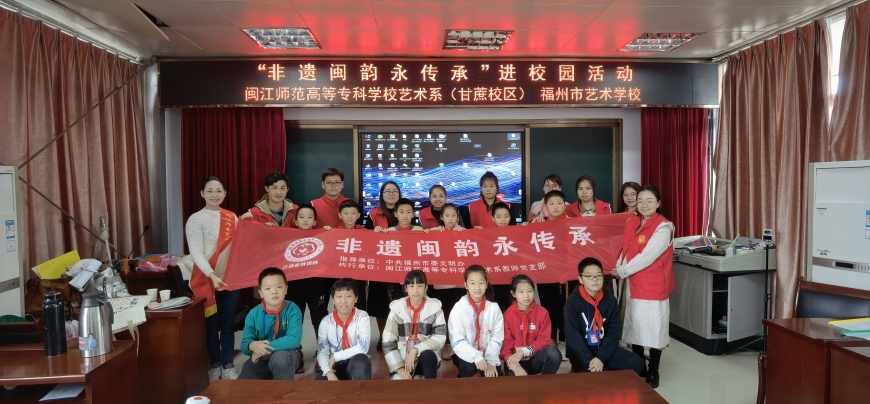 2021年11月24日,在福州市委文明辦的指導(dǎo)下,閩江師范高等專(zhuān)科學(xué)校藝術(shù)系(福州市藝術(shù)學(xué)校)教師支部3名黨員教師赴閩侯縣小箬中心小學(xué)進(jìn)行“非遺閩韻永傳承”文化藝術(shù)進(jìn)校園活動(dòng)。
