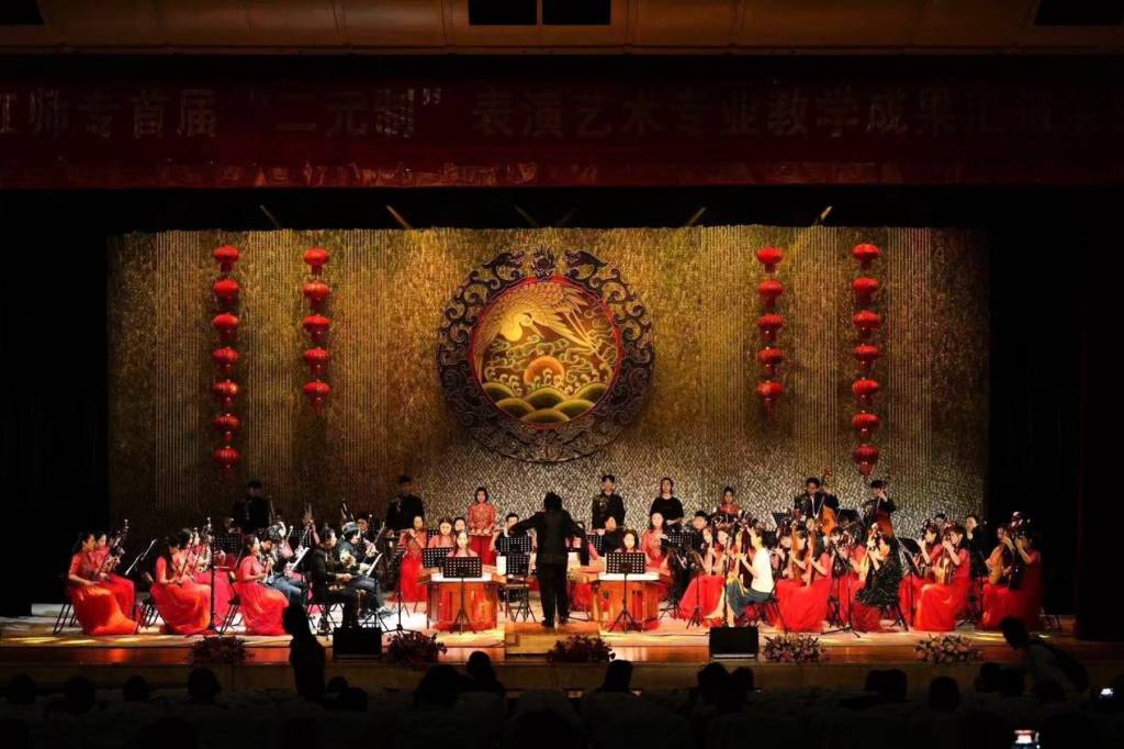 戲曲民族管弦樂(lè)《又見(jiàn)茉莉》,在經(jīng)典名曲《茉莉花》的基礎(chǔ)上融合閩劇音樂(lè)“茉莉花”、“彌陀寺”、“一枝花”等傳統(tǒng)曲牌同時(shí)加入福州傳統(tǒng)十番鑼鼓音樂(lè)改編創(chuàng)作而成。樂(lè)曲時(shí)而悠揚(yáng)時(shí)而跳躍,時(shí)而抒情時(shí)而激昂,傳統(tǒng)民樂(lè)與戲曲音樂(lè)的巧妙融合,碰撞出別樣的火花。該作品由我校青年教師李一盈作曲改編。