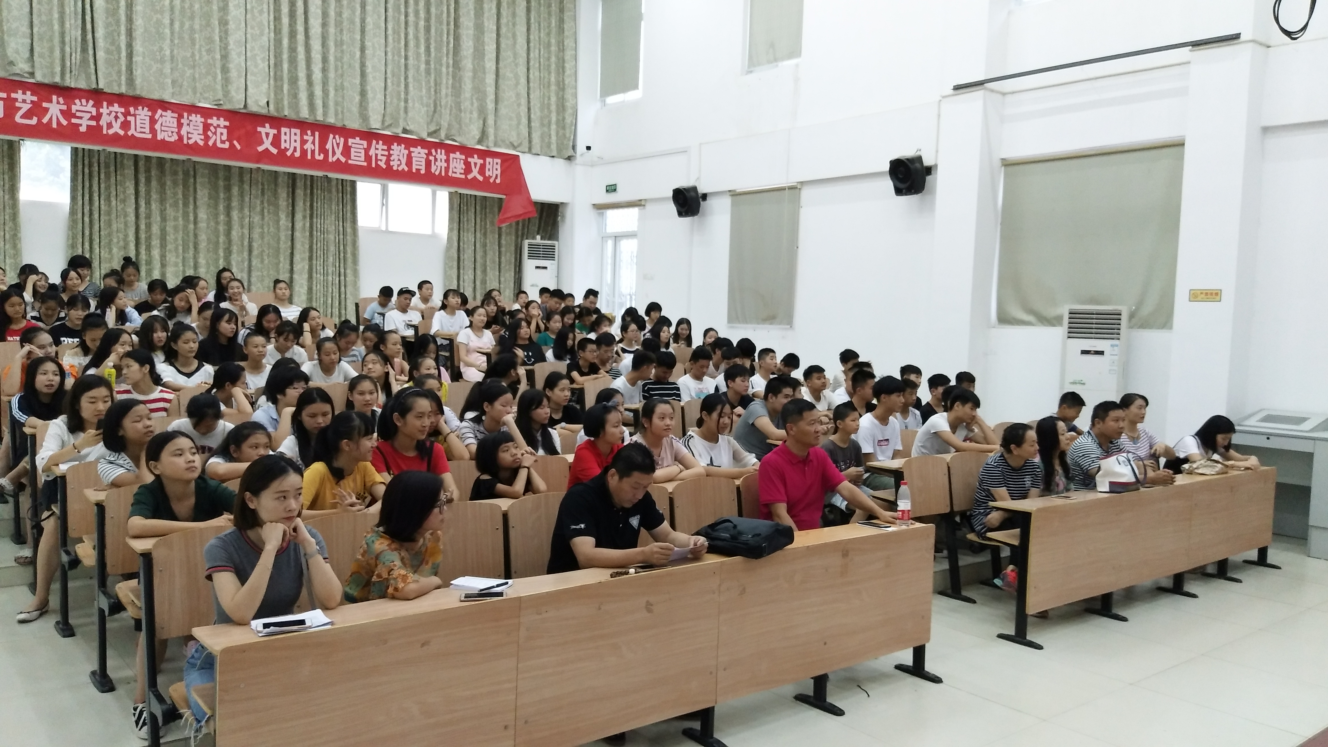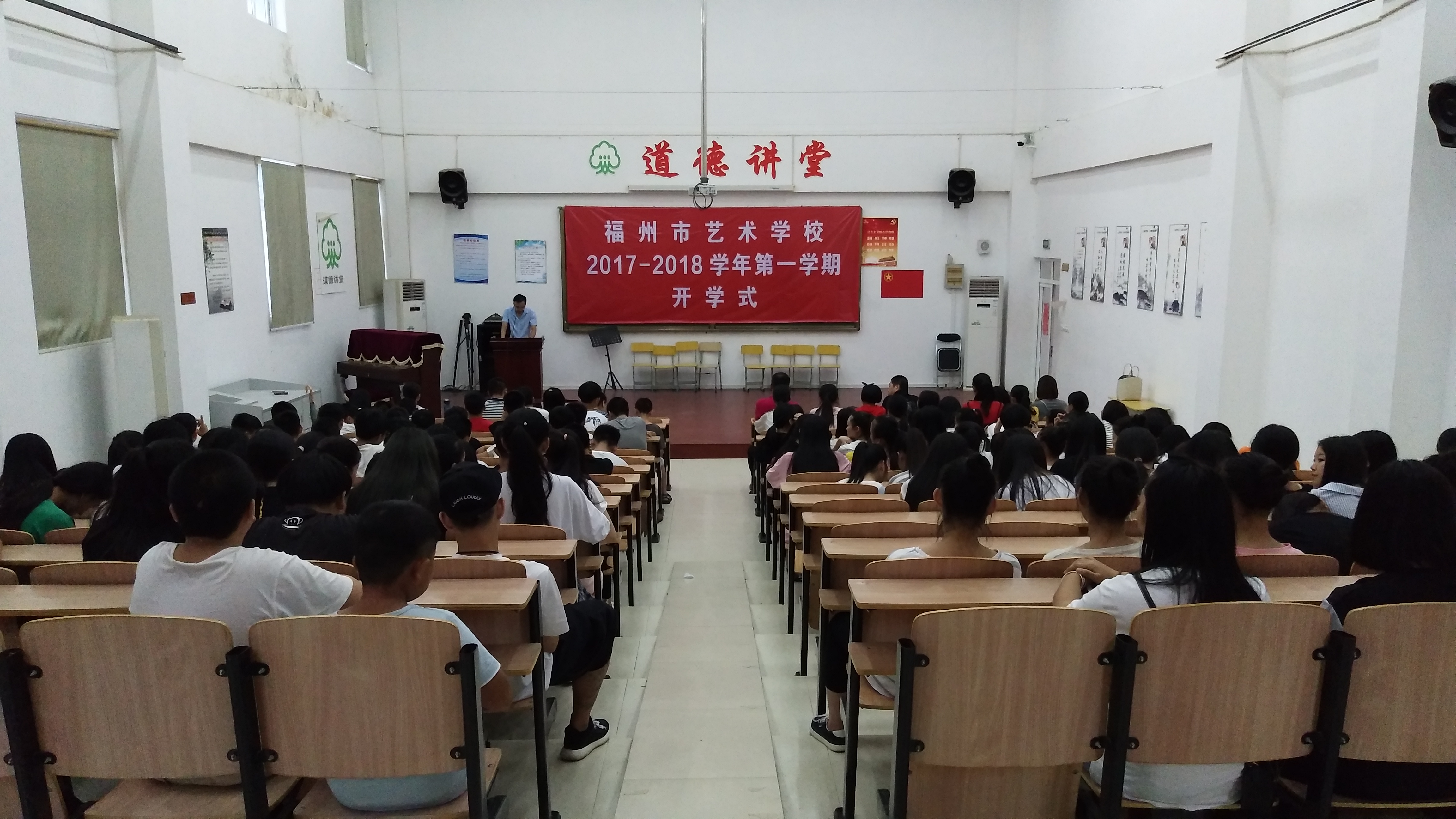 秋風(fēng)送爽,碩果累累。在這美好的季節(jié)里,我們滿懷豪情地迎來(lái)了新學(xué)年,同時(shí)也迎來(lái)了又一批朝氣蓬勃的莘莘學(xué)子。9月3日下午福州市藝術(shù)學(xué)校2017級(jí)新生開學(xué)典禮在教學(xué)樓階梯教室隆重舉行,我校校長(zhǎng)董志強(qiáng)、書記林萍、教研室主任林夢(mèng)萍及各專業(yè)負(fù)責(zé)人參加了開學(xué)典禮,典禮由學(xué)生處負(fù)責(zé)人黃曉明主持。