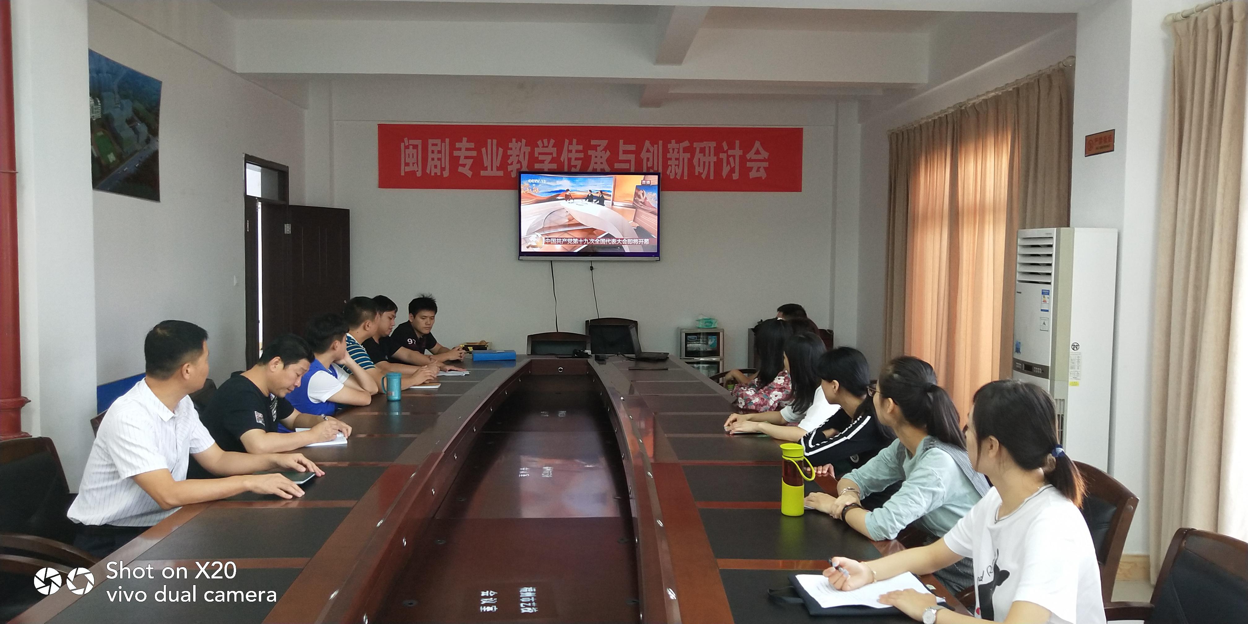 黨支部書記董志強強調(diào),黨的十九大是在全面建成小康社會決勝階段、中國特色社會主義進入新時代的關(guān)鍵時期召開的一次十分重要的大會。全體干部職工要認真學習貫徹大會精神,采取多種方式學習宣傳,將思想和行動凝聚到大會精神上,進一步提振干事創(chuàng)業(yè)精氣神,弘揚“馬上就辦、真抓實干”的工作作風,立足教書育人的本職工作,傳承閩劇等傳統(tǒng)文化,堅定文化自信,推動社會主義文化繁榮興盛,為實現(xiàn)中華民族偉大復興的中國夢不懈奮斗。