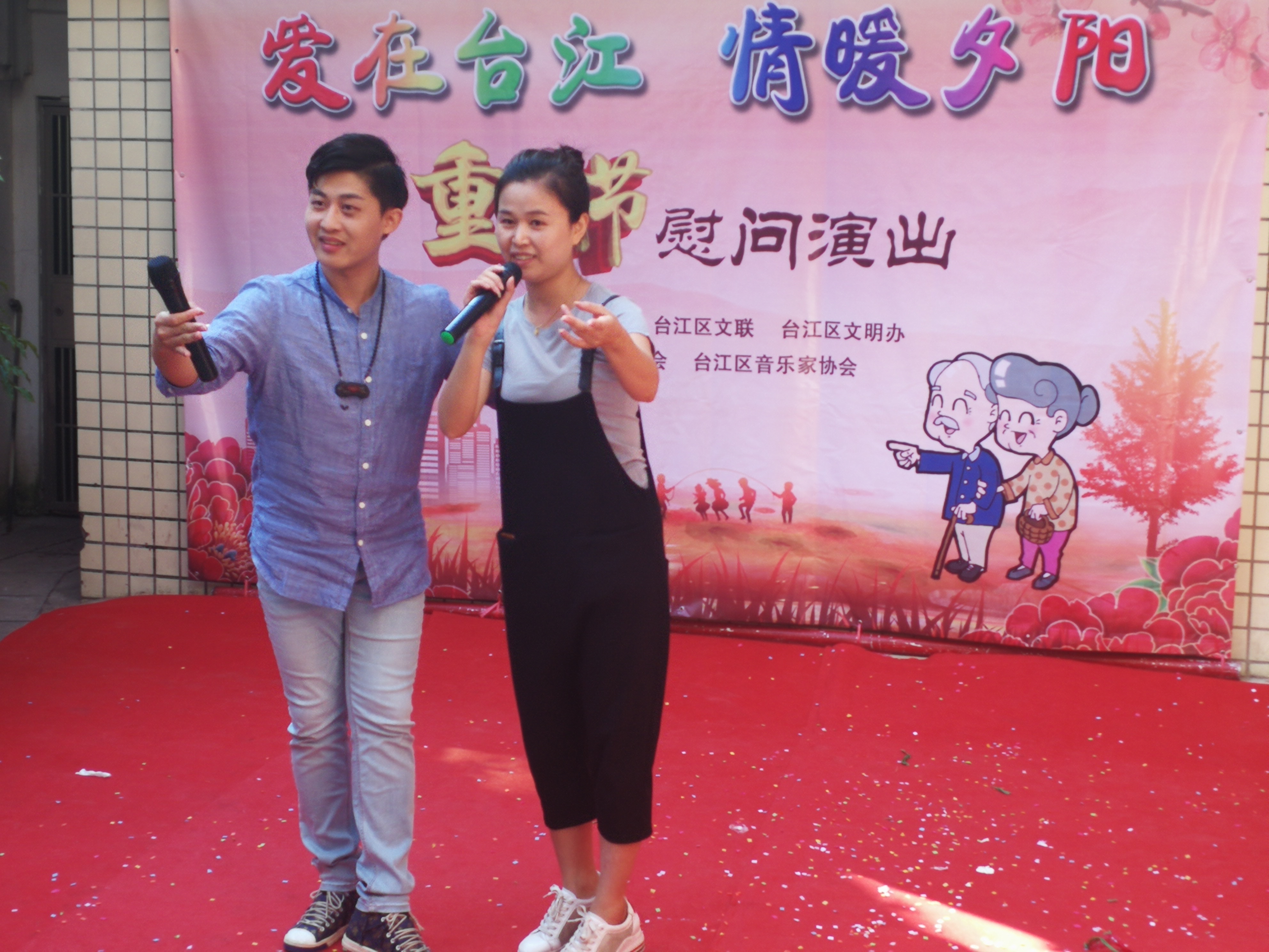 金秋十月爽,九九話重陽,日月兩重歸,相映地久長,在這秋高氣爽,稻谷飄香的季節(jié),我們迎來了又一個重陽佳節(jié)。為弘揚中華民族愛老敬老的優(yōu)秀傳統(tǒng)美德,營造尊老、愛老、助老的氛圍,10月28日我校青年教師林特與張林娜受邀來到夕陽紅公寓,參加由臺江區(qū)文聯(lián)主辦《愛在臺江,情暖夕陽》慰問活動。本次活動由林特擔任主持人,并與張林娜共同合唱了閩劇《珍珠塔·贈塔》與《梅玉配·樓會》選段,受到了大家的一致喜愛與好評。