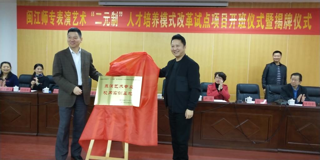 最后,由我校黨委書記陳榮生與市閩劇藝術(shù)傳承發(fā)展中心主任親自揭牌。至此,首屆表演藝術(shù)(閩劇表演)“二元制”人才培養(yǎng)模式改革試點項目開班儀式暨揭牌儀式圓滿落下帷幕。