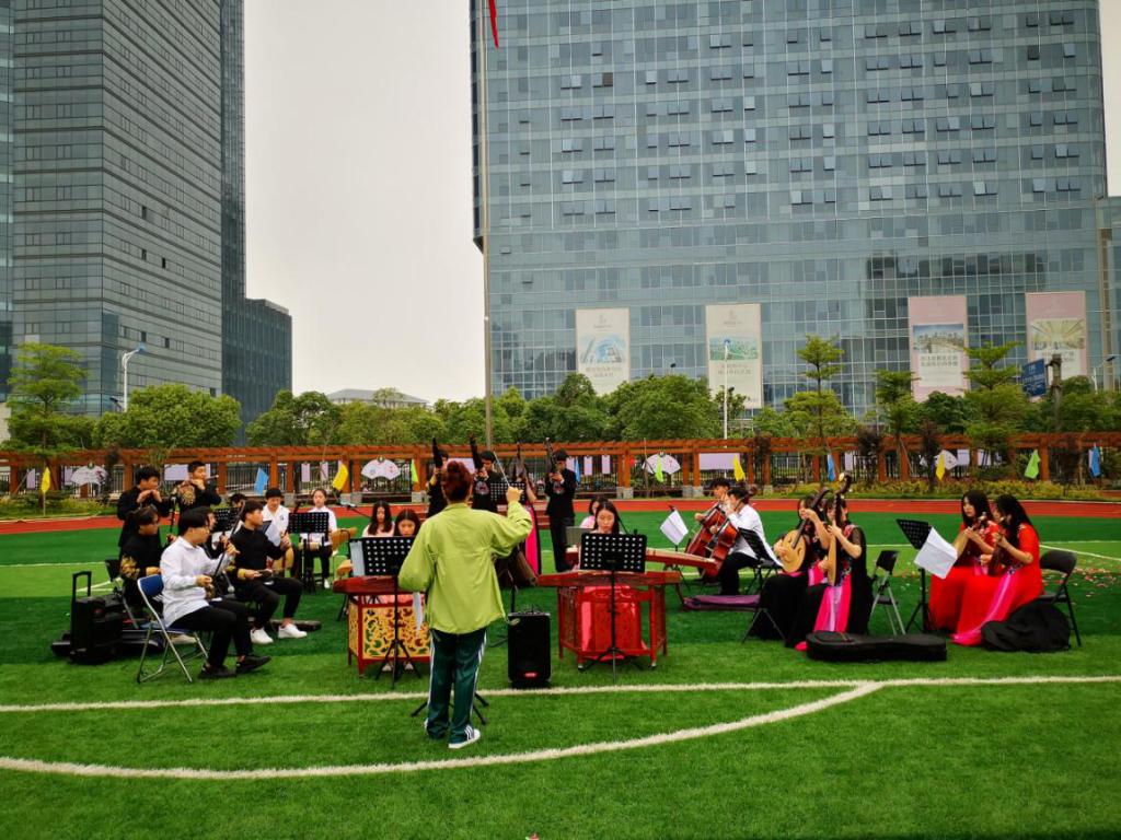 入場(chǎng)式結(jié)束后,在音樂(lè)班帶來(lái)的器樂(lè)重奏《又見(jiàn)茉莉花》中拉開(kāi)