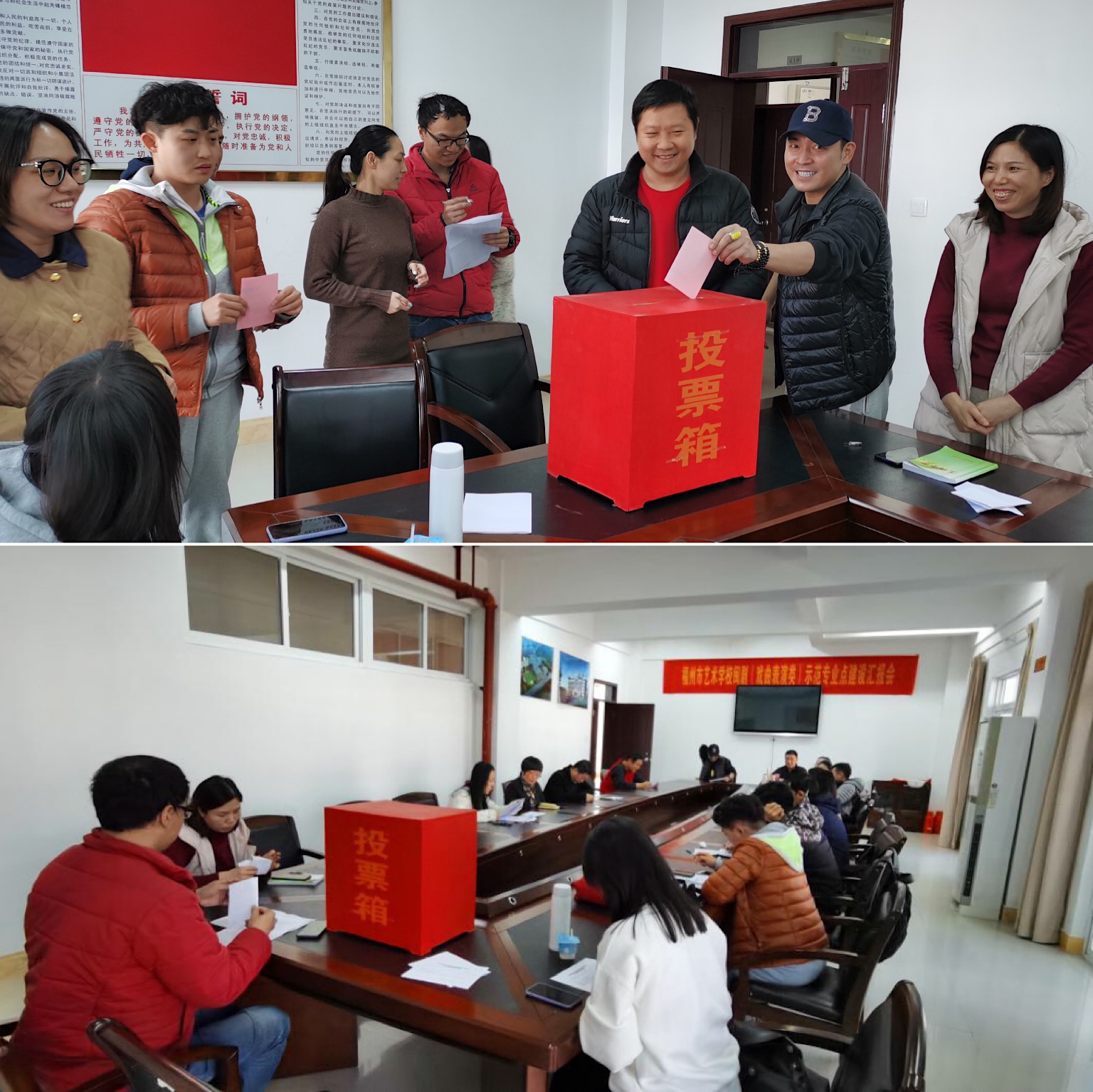 2019年12月3日下午,藝術系教師支部在福州市藝術學校四樓會議室召開全體黨員大會,進行換屆選舉。會議由上一屆教師支部書記王華主持。