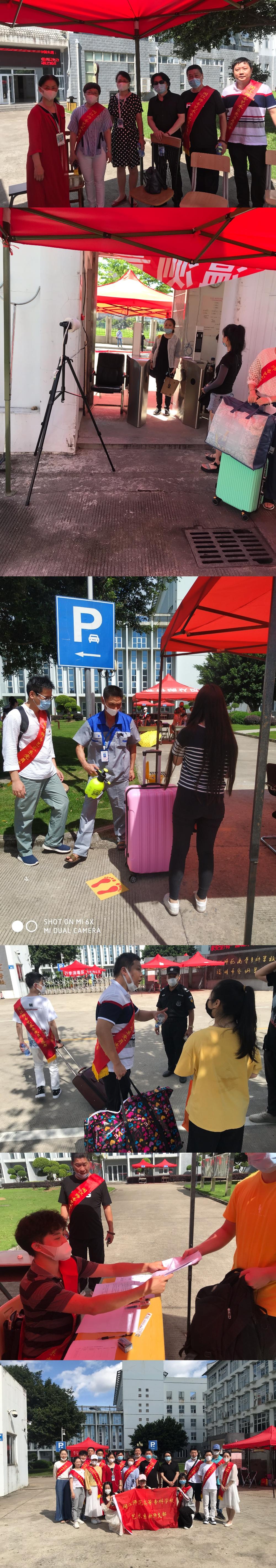 為確保學(xué)生報(bào)到工作安全、有序進(jìn)行,系部領(lǐng)導(dǎo)及部門(mén)負(fù)責(zé)人、黨員干部、教師、行政、安保等全體教職工全部到位,提前做好“一對(duì)一”、“人盯人”等返?;I備,并提前設(shè)置好體溫檢測(cè)區(qū)、行李消毒區(qū)、身份確認(rèn)區(qū)、預(yù)分診室、黨員服務(wù)站、心理健康服務(wù)站等六大報(bào)到服務(wù)區(qū)域,為學(xué)生提供最貼心的服務(wù)。屬地派出所民警、交警也現(xiàn)場(chǎng)為報(bào)到學(xué)生提供疏導(dǎo)交通服務(wù)。返校學(xué)生均按照要求佩戴口罩,保持1米間距有序報(bào)到,經(jīng)過(guò)嚴(yán)格測(cè)量體溫、行李消毒后進(jìn)入校園。返校學(xué)生經(jīng)過(guò)查驗(yàn)開(kāi)學(xué)前14天動(dòng)態(tài)健康記錄、建立基礎(chǔ)健康檔案、現(xiàn)場(chǎng)身份核驗(yàn)并簽訂個(gè)人健康信息承諾書(shū)后在黨員志愿服務(wù)者及配對(duì)教師的幫助下進(jìn)入宿舍。
