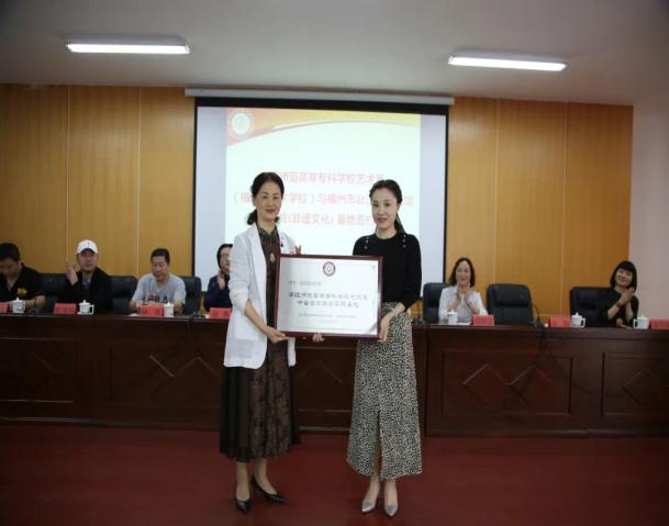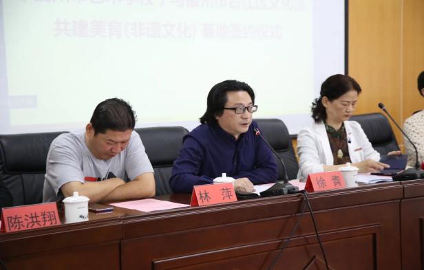 為繼承和弘揚中華民族優(yōu)秀傳統文化,加強非物質文化遺產的傳承保護,2020年10月27日上午,藝術系(福州市藝術學校)與福州市臺江區(qū)文化館在甘蔗校區(qū)舉行共建美育(非遺文化) 基地簽約儀式。臺江區(qū)文化體育和旅游局局長林穎、副局長鄭師堅、文化館館長吳靜、第四中心小學校長潘家娜,閩江師范高等專科學校校長林賢、藝術系主任、福州市藝術學校校長楊曉勤、藝術系副主任、福州市藝術學校副校長徐青、藝術系黨總支副書記林萍、戲曲學科專業(yè)帶頭人陳洪翔及部分教師代表參加了簽約儀式。