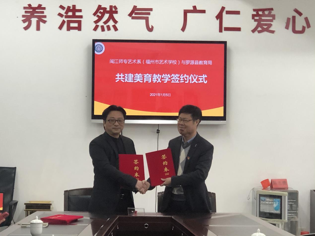為貫徹落實習近平總書記關于教育的重要論述和全國教育大會精神,進一步強化學校美育育人功能,構建德智體美勞全面培養(yǎng)的教育體系,1月5日上午,羅源縣教育局局長黃乃通攜福州民族中學校長鄧信泉、羅源縣第二中學校長阮賢明等一行6人蒞臨我校甘蔗校區(qū),開展美育教育教學“結對子 種文化”專題調研活動,并與藝術系(福州市藝術學校)簽署共建美育教育教學合作協(xié)議。閩江師范高等??茖W校校長林賢、藝術系全體黨政聯(lián)席會議成員及相關教研室負責同志參加。