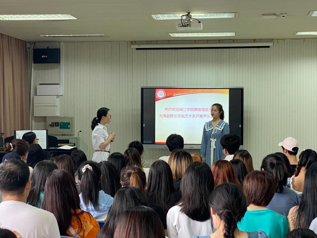 為提高聲樂(lè)專業(yè)學(xué)生的音樂(lè)素養(yǎng),進(jìn)一步提升學(xué)生的演唱水準(zhǔn)和音樂(lè)鑒賞能力,藝術(shù)系聲樂(lè)教研室邀請(qǐng)閩江學(xué)院蔡繼琨音樂(lè)學(xué)院劉淘副院長(zhǎng)來(lái)我系開(kāi)展聲樂(lè)藝術(shù)講座。講座于4月23日下午在旗山校區(qū)五樓合唱教室舉辦,由聲樂(lè)教研室主任徐麗紅副教授主持,聲樂(lè)教研室全體教師及全體聲樂(lè)專業(yè)主修學(xué)生參加。