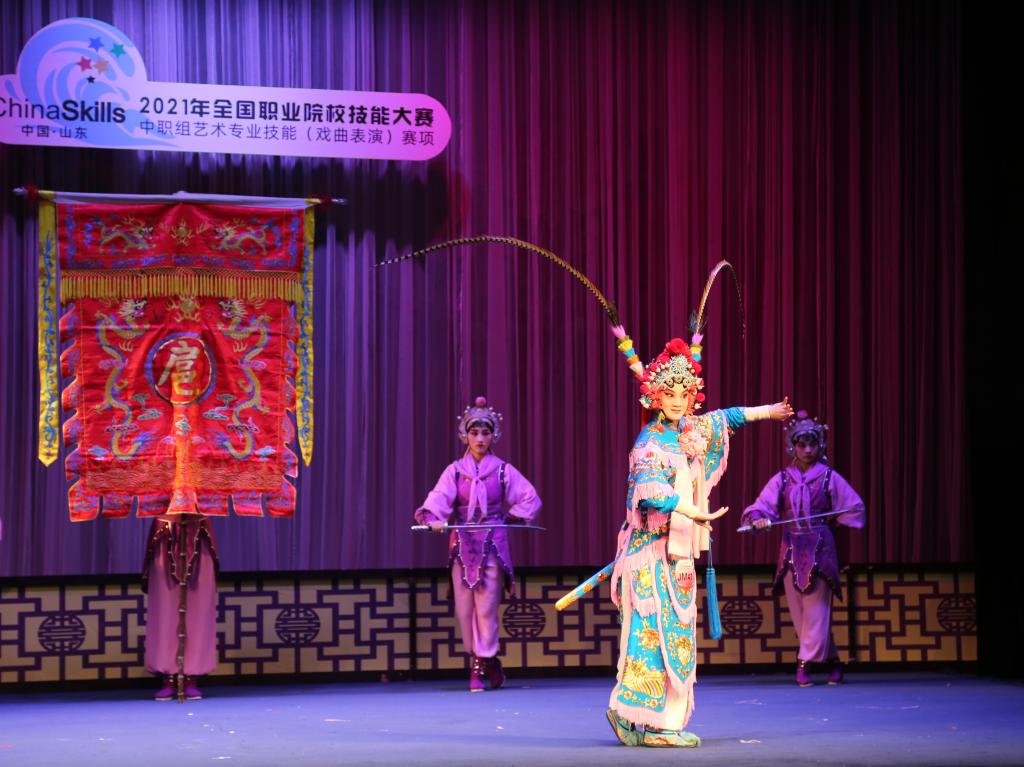 2021年全國職業(yè)院校技能大賽中職組“藝術專業(yè)技能(戲曲表演)”大賽(以下簡稱戲曲國賽),6月18-22日,在山東煙臺舉辦。本次的戲曲國賽是由教育部職業(yè)教育與成人教育司承辦,全國文化藝術職業(yè)教育教學指導委員會、山東省煙臺藝術學校協(xié)辦,比賽以團體賽的形式進行,每省選拔1個院校參賽(每隊3人),全國各省市,自治區(qū)的24支參賽隊72名選手參加。我校代表福建省參賽劇目是閩劇《水牢摸印》、《紅裙記·追夫》《扈家莊》3出折子戲。