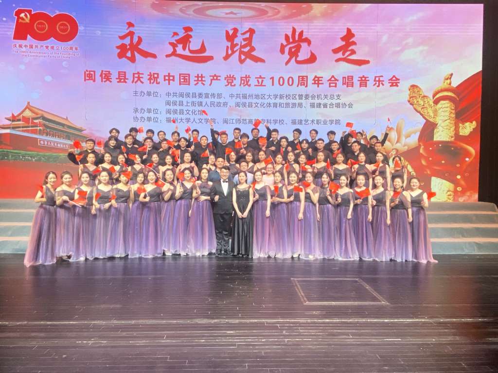 6月27日,我系繁星合唱團應邀參演由中共閩侯縣委宣傳部、中共福州地區(qū)大學新校區(qū)管委會機關(guān)總支、閩侯縣文化體育和旅游局、福建省合唱協(xié)會主辦,閩侯縣文化館承辦的“永遠跟黨走”閩侯縣慶祝中國共產(chǎn)黨成立100周年合唱展演音樂會,本次音樂會在福州大學城文化藝術(shù)中心大劇場激情唱響??h領(lǐng)導黃詩楊、曾玉、葉玲,閩江師專藝術(shù)系主任徐青、副主任方晶、以及各相關(guān)部門領(lǐng)導和市民共同到場聆聽音樂會。