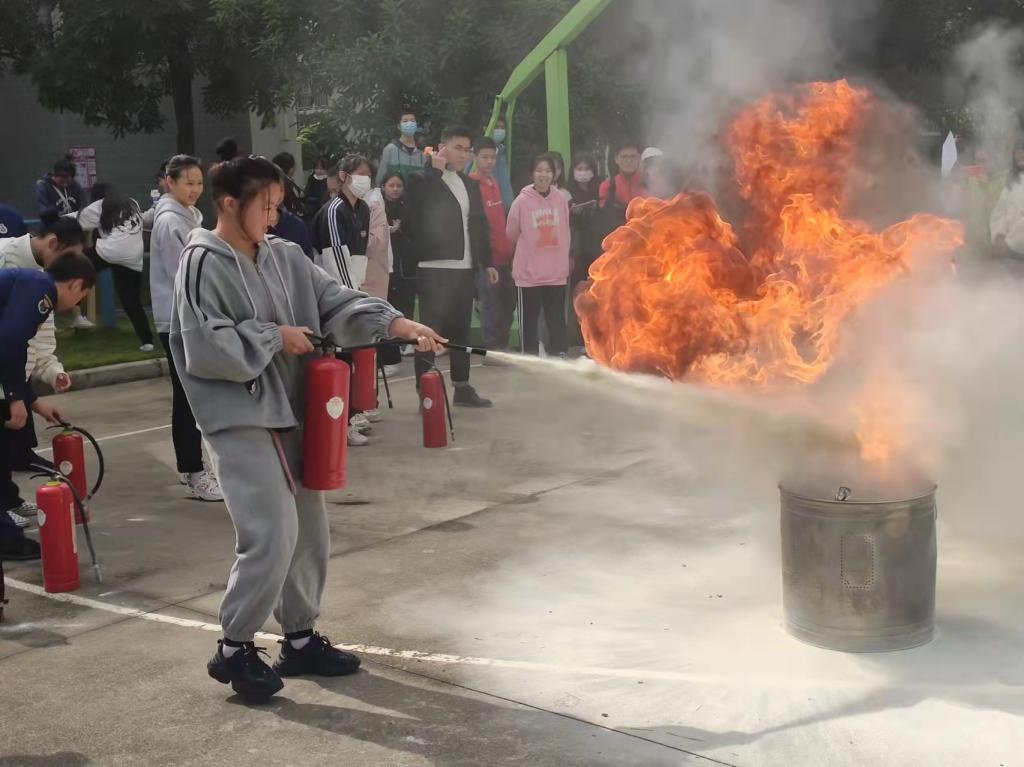火災(zāi)逃生演練結(jié)束后,師生們在籃球場進(jìn)行滅火器滅火演練。班主任在現(xiàn)場維持秩序,閩侯縣消防救援大隊(duì)消防員指導(dǎo)學(xué)生進(jìn)行滅火器的使用,在保證學(xué)生安全的同時(shí),讓學(xué)生真正學(xué)會(huì)如何使用滅火器撲滅火災(zāi)。