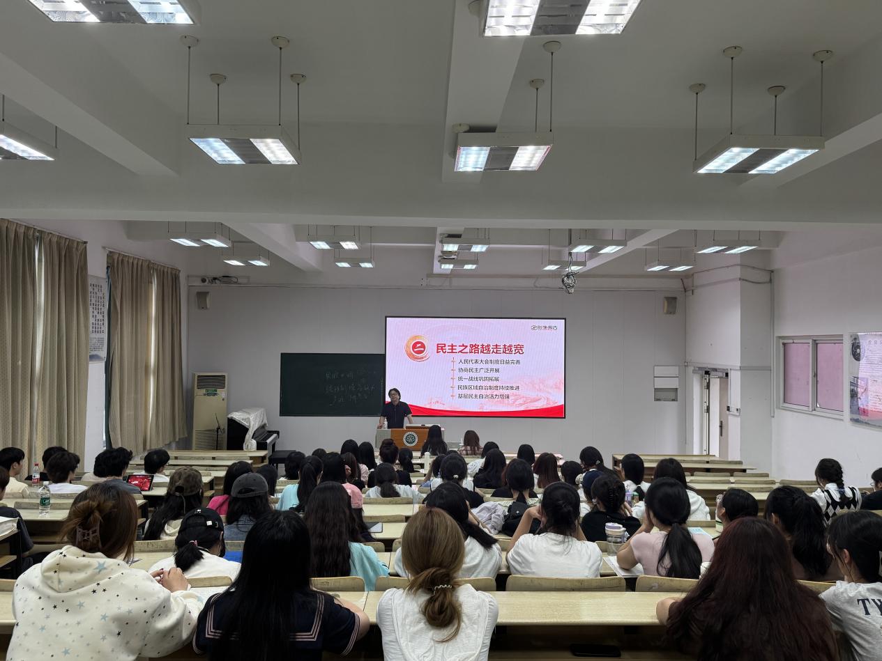 徐院長指出今年是中華人民共和國成立75周年,在一代又一代華夏兒女攻堅克難、接續(xù)奮斗下,中國的國家面貌和人民生活發(fā)生了翻天覆地的變化。院長帶領(lǐng)同學(xué)們從經(jīng)濟(jì)持續(xù)健康發(fā)展、民主之路越走越寬、文化發(fā)展更加繁榮、人民生活極大改善、美麗中國煥發(fā)新顏五個方面回顧了中國共產(chǎn)黨帶領(lǐng)中華民族從艱難走向輝煌的歷程。通過詳實的數(shù)據(jù)和生動的案例,帶領(lǐng)同學(xué)們著重回顧了中華人民共和國成立75 年以來經(jīng)濟(jì)持續(xù)健康發(fā)展和人民生活極大改善兩大方面,特別是近年來我國在科技創(chuàng)新、經(jīng)濟(jì)發(fā)展、對外開放、人民生活水平顯著提高等方面取得的輝煌成就,激發(fā)了同學(xué)們的愛國情懷和民族自豪感。