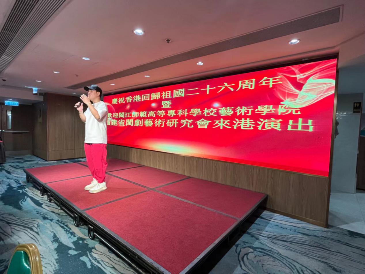 “生在福州城/話帶福州腔/祖宗留下風(fēng)水寶地/照我閩都泱泱”開嗓即巔峰,出場即高潮。7月3日晚,國家一級演員、梅花獎得主、我校藝術(shù)學(xué)院副院長陳洪翔用一首極具閩都風(fēng)土人情的歌曲《福州我親親的故鄉(xiāng)》,拉開了我校赴港文化交流演出團(tuán)與荃灣旅港鄉(xiāng)親“慶祝香港回歸祖國懷抱26周年”聯(lián)歡活動的序幕,為在座100多位鄉(xiāng)親重現(xiàn)了風(fēng)水寶地閩都風(fēng)采,瞬間抓住了每位在場鄉(xiāng)親的心。