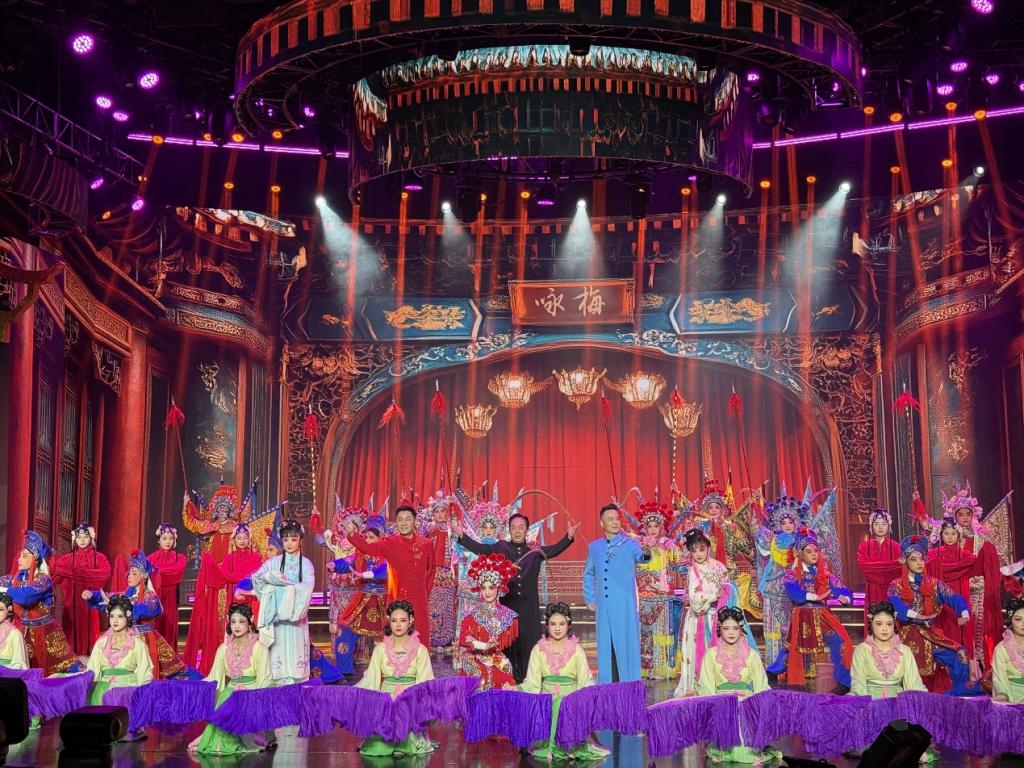 近日,隨著2025福州十邑春晚在福州廣播電視臺(tái)演播大廳的精彩錄制,一場(chǎng)融合了傳統(tǒng)與現(xiàn)代、情感與技術(shù)的視聽盛宴即將面向全球觀眾呈現(xiàn)。我校三朵閩劇梅花陳乃春、陳洪翔及吳則文攜近30名學(xué)子應(yīng)邀演繹閩劇節(jié)目《梆子疊·詠梅》,副校長(zhǎng)江柳青蒞臨現(xiàn)場(chǎng)觀摩。