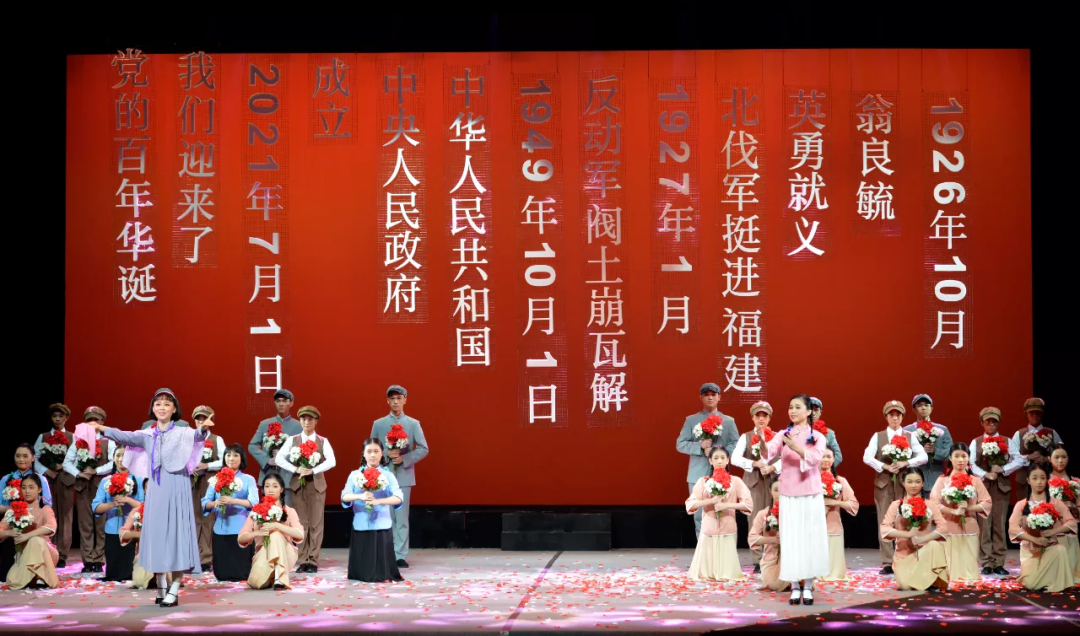 2021年學(xué)院傾心打造獻(xiàn)禮建黨100周年兩部年度大戲:情景歌舞劇《奔騰向?!泛烷}劇現(xiàn)代戲《青春祭》。情景歌舞劇《奔騰向海》作為第八屆福建藝術(shù)節(jié)暨第五屆全省音樂(lè)舞蹈雜技曲藝優(yōu)秀?。ü?jié))目展演入選劇目在福州大學(xué)城文化藝術(shù)中心震撼亮相。200多名師生以歌以舞演繹著這座有著2200多年建成史的國(guó)家歷史文化名城——福州的故事。2023年情景歌舞劇《奔騰向?!酚衷诟=ù髣≡汉烷}江之心隆重開(kāi)演,演出吸引了8萬(wàn)余名線上觀眾觀看,點(diǎn)贊數(shù)超過(guò)了46萬(wàn)。
